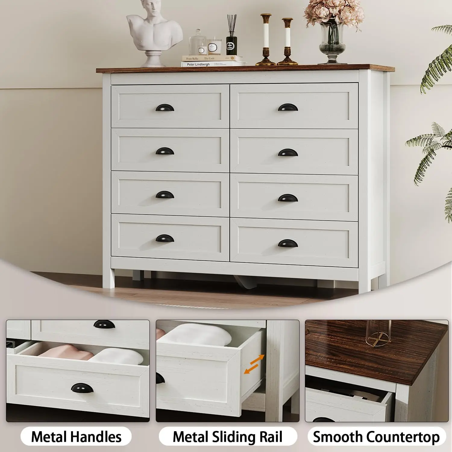 - 【Perfectly Designed Dresser】With a smooth finish and classic black double handles, this dresser exudes a vintage, minimalist aesthetic. Its versatile design blends seamlessly with any home style, brightening your space and keeping you organized.