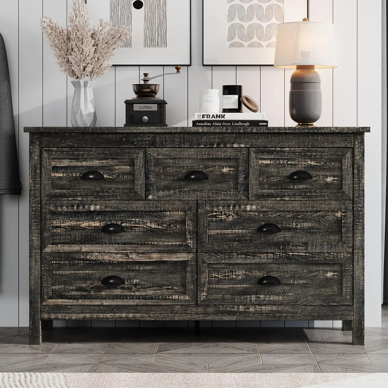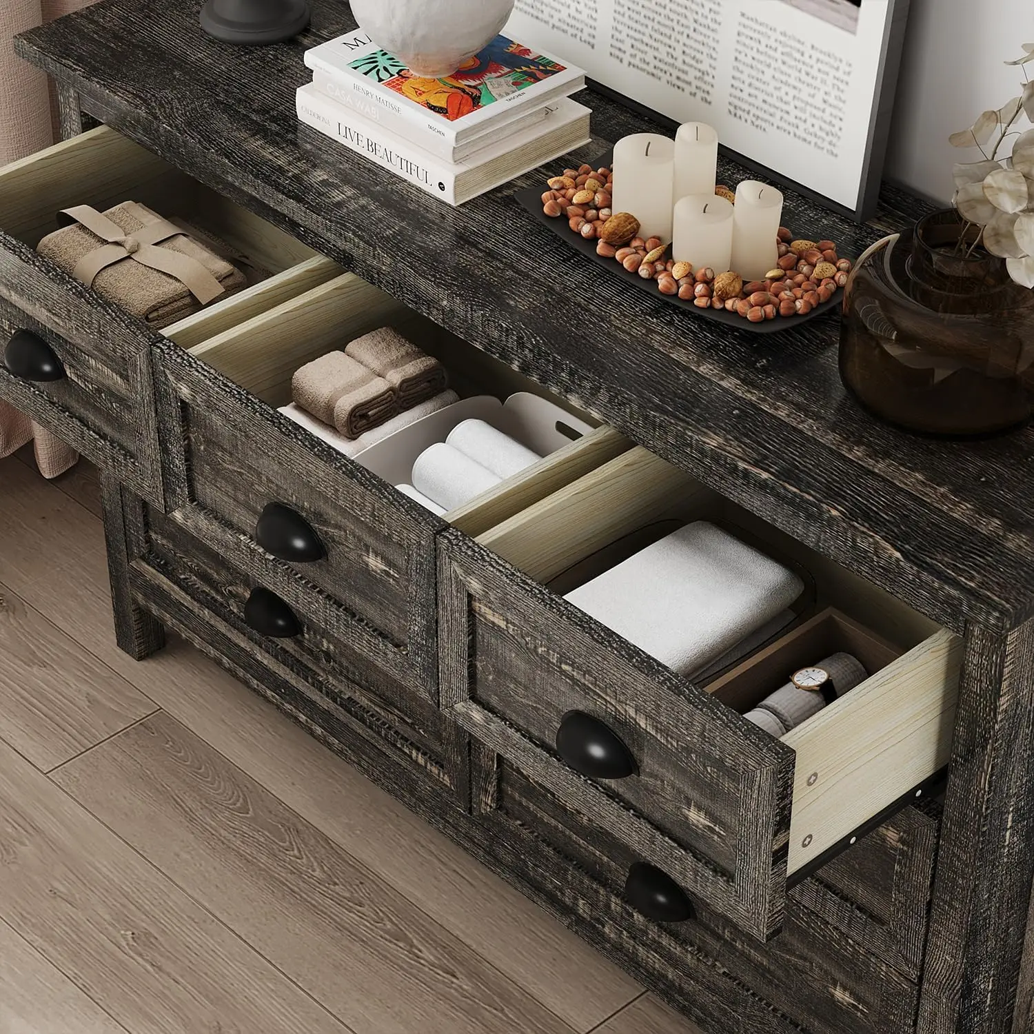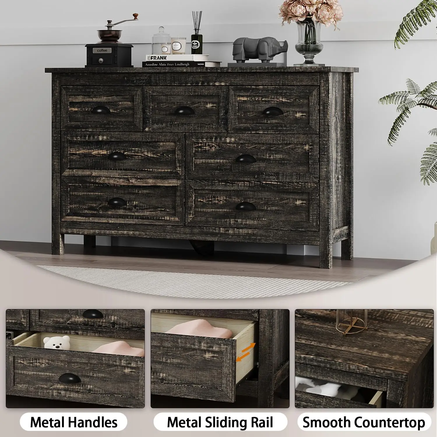 - 【Dark Oak Vintage Dresser is Solid and Waterproof】HOUROM dresser is made of high quality MDF, durable, natural texture and not easy to deform. Five solid cabinet legs and two anti-tipping devices enhance stability and ensure the safety of your family. The dresser is coated with water-based varnish, which is waterproof and easy to clean, and is also a promise of quality.