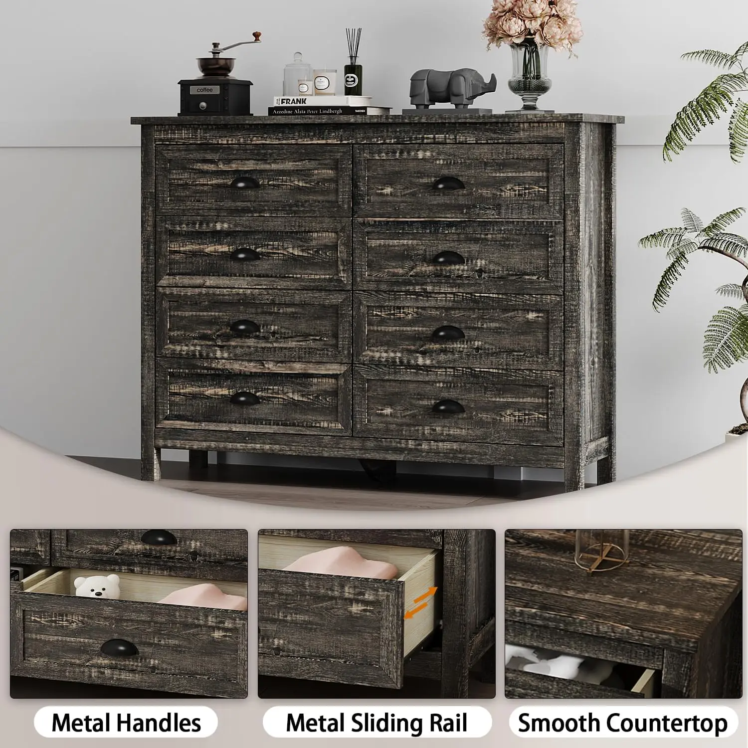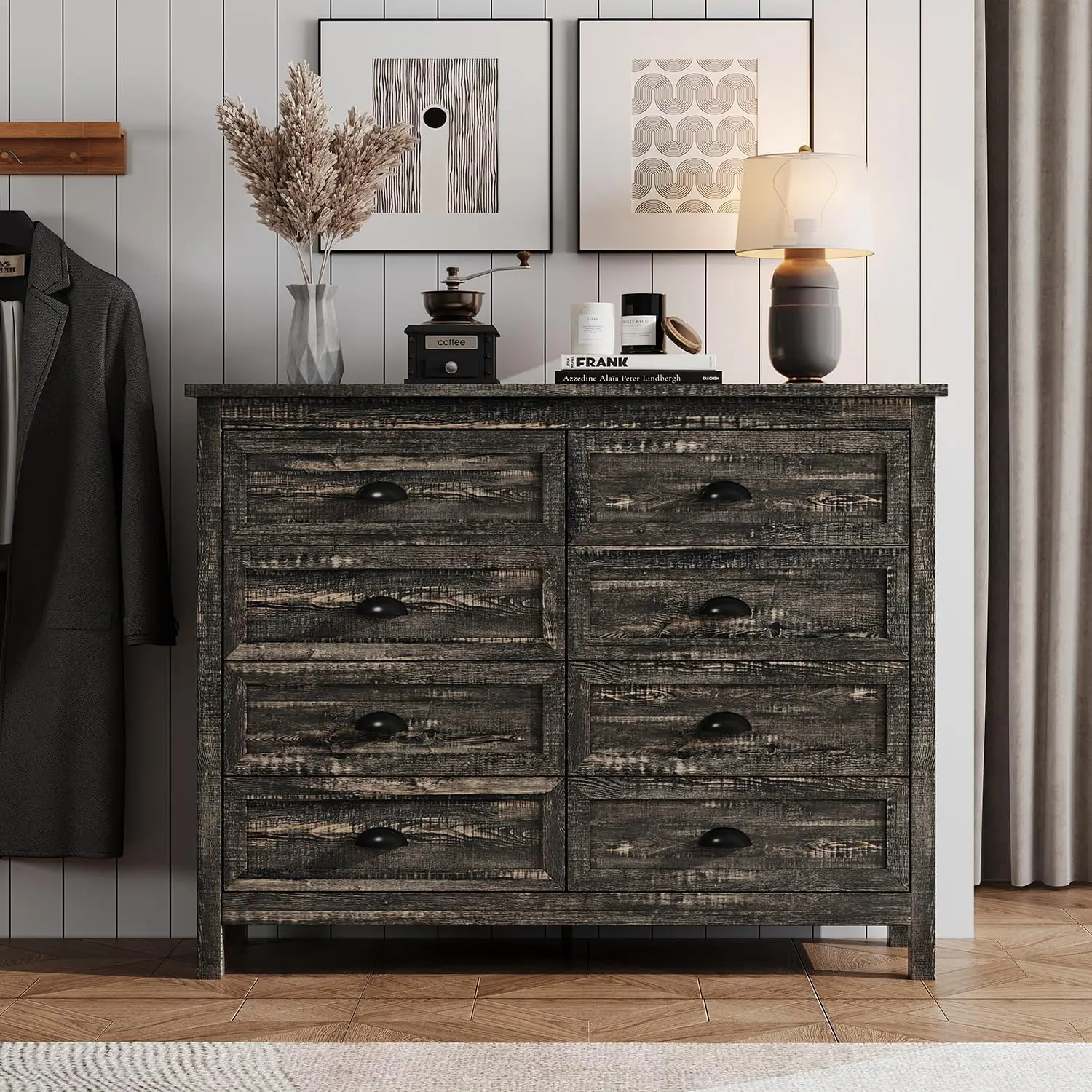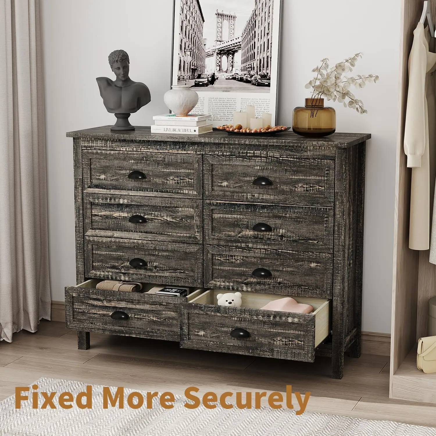 - 【Large Capacity 8 Drawer Dresser Bedroom Dresser】This antique dresser is 47.2 inches wide x 15.7 inches deep x 35.5 inches high with six large drawers, each 5.5 inches deep. It’s ideal for organizing clothing, documents, jewelry and personal items, while the wide tabletop provides space for lamps, aromatherapy, picture frames, plants and decorative items. Simplify your living space, maintain order and infuse your room with warmth.